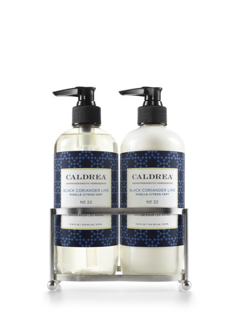 Caldrea Stainless Sink Caddy is perfect for a smaller sink or in a bathroom. Our petite, beautifully wrought caddy is sturdy, water-resistant, and shaped to hold our Caldrea 10.8 fl. oz. Hand Soap Liquid and Hand Lotion. Products sold separately.